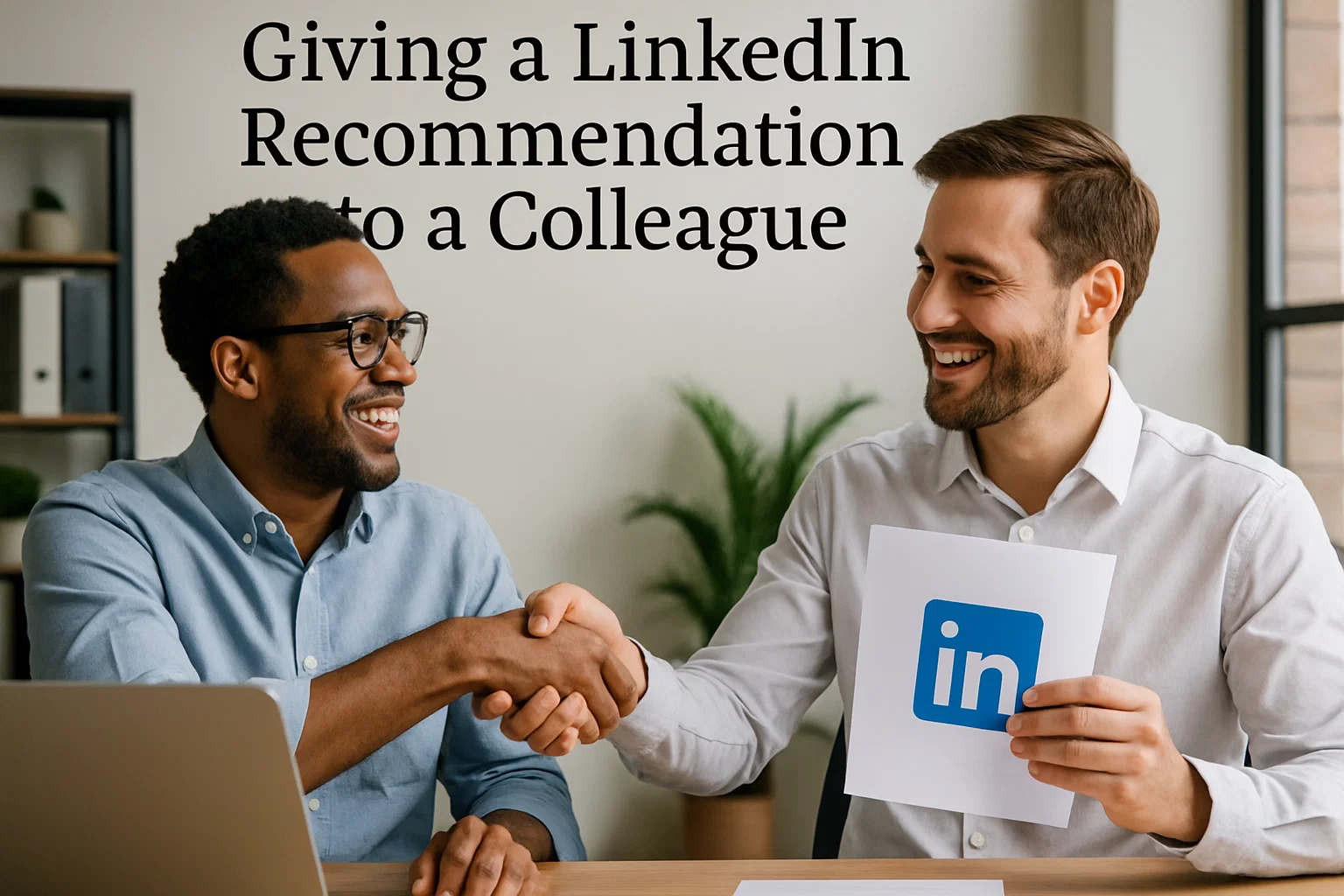 Professional colleagues exchanging appreciation after a LinkedIn testimonial