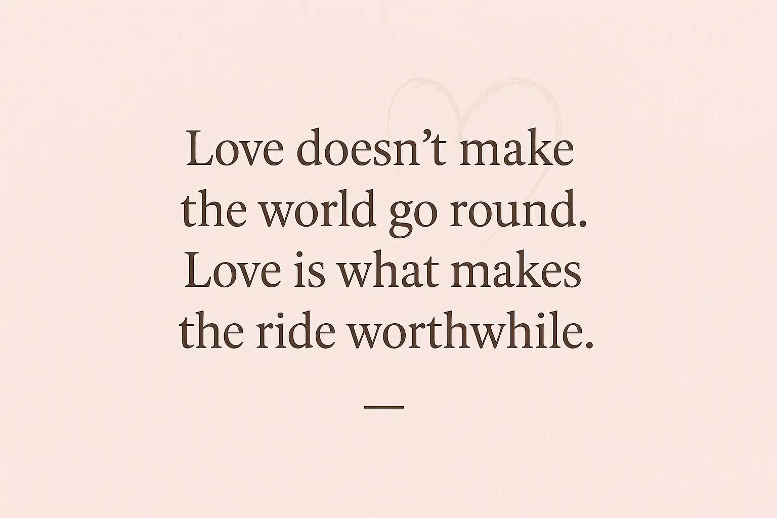 “Love doesn’t make the world go round. Love is what makes the ride worthwhile.” Franklin P. Jones